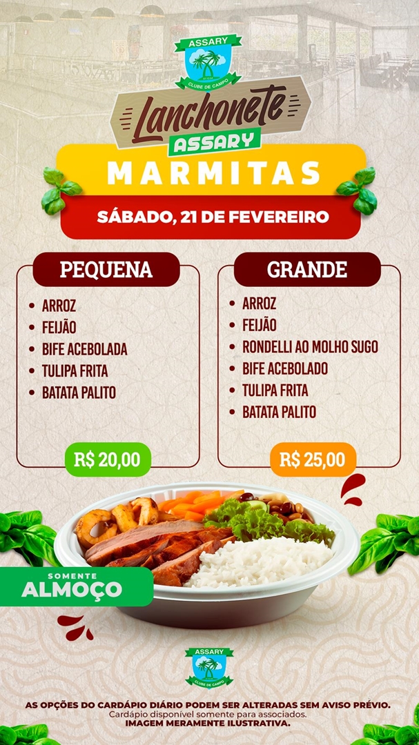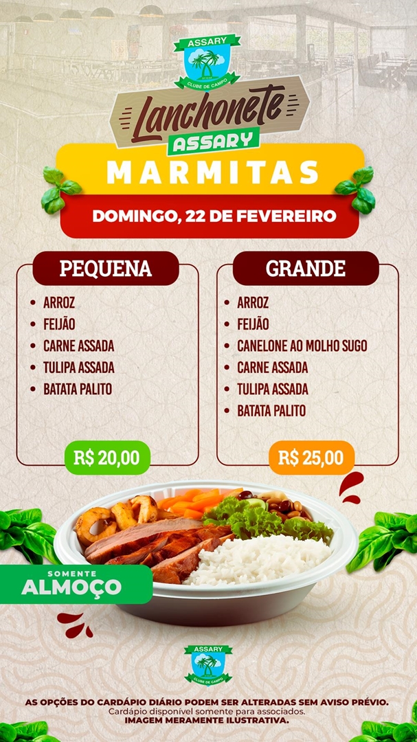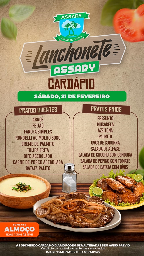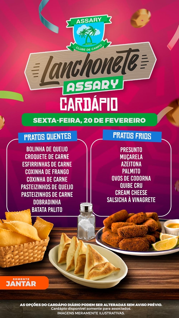 Cada dia da Semana tem um cardápio diferente e o melhor lugar para jantar é na Lanchonete do Assary.
