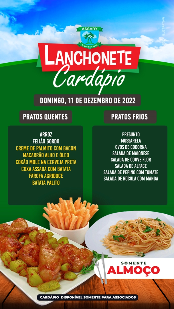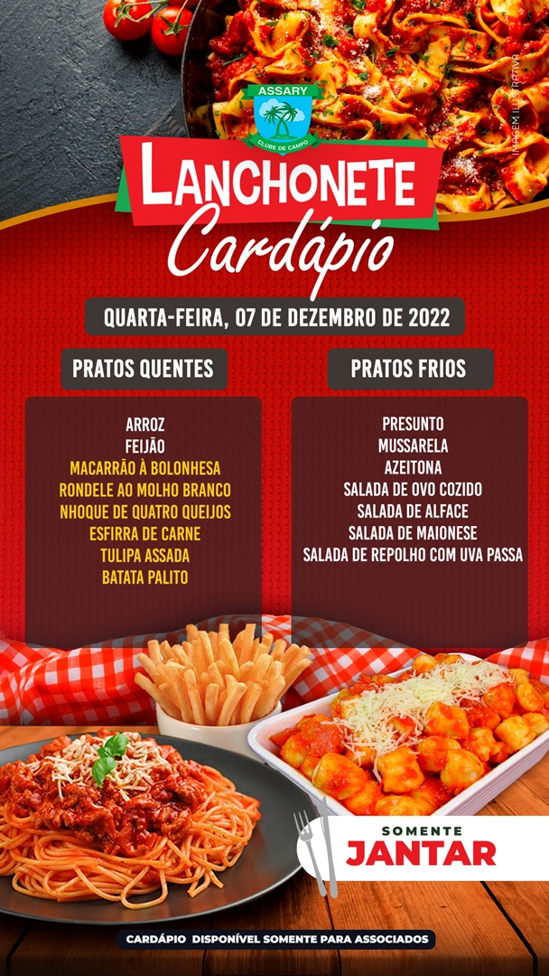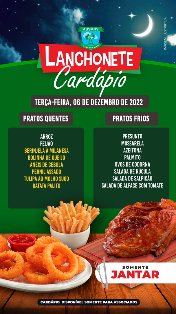 Cada dia da Semana um cardápio diferente e o melhor lugar para jantar é na Lanchonete do Assary.