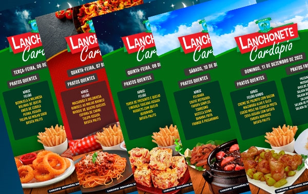 Cardápios da Lanchonete