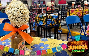 A decoração cuidadosamente elaborada remetia ao clima aconchegante do interior, com bandeirinhas coloridas, balões e as mesas com toalhas bem coloridas, criando uma atmosfera festiva e acolhedora. A interação entre os participantes foi uma constante, com todos aproveitando o clima descontraído e contagiante da festa.