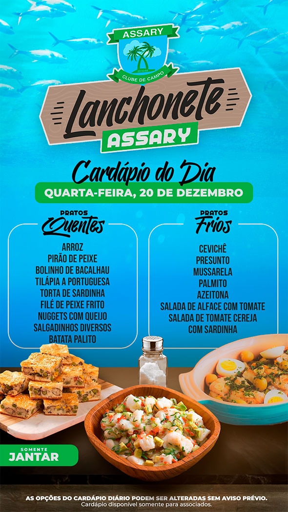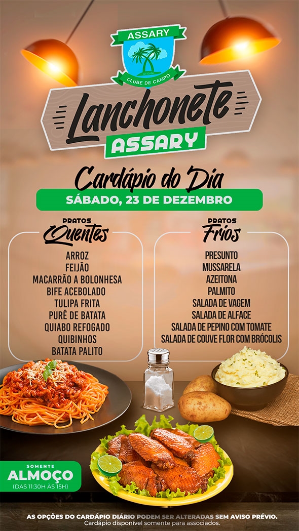 A cada dia a Lanchonete do Assary preparou um cardápio diferente e pra lá de especial !