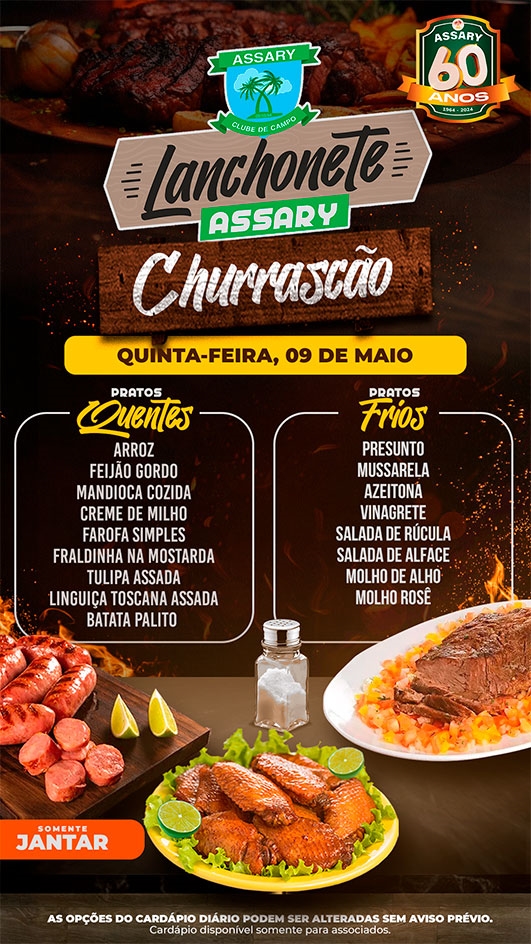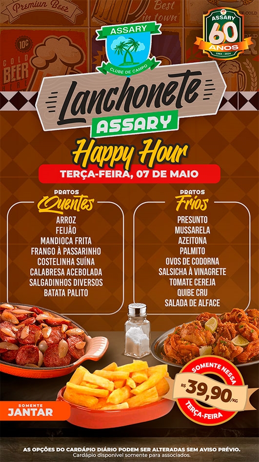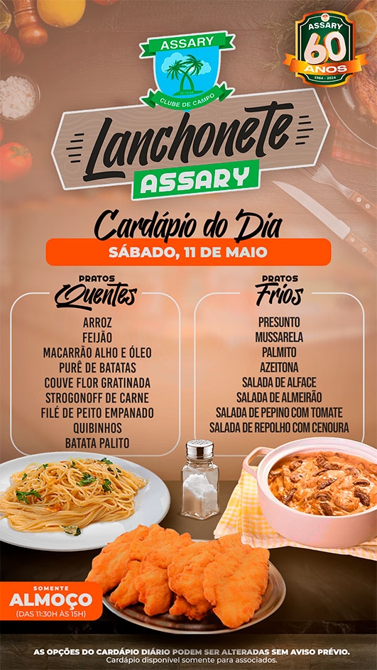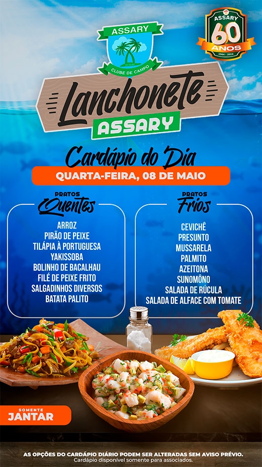 As opções do cardápio podem ser alteradas sem aviso prévio.