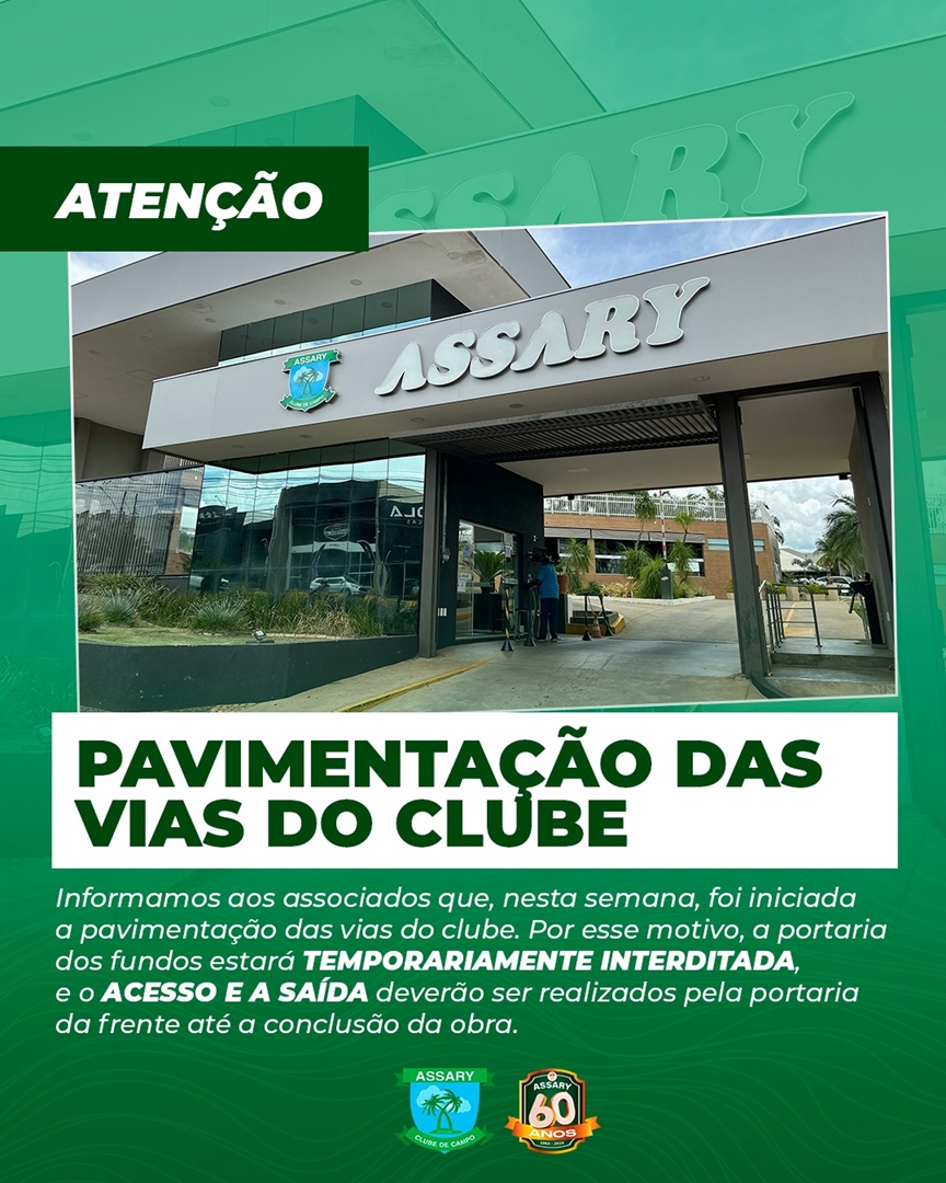 Informamos aos associados que, nesta semana, foi iniciada a pavimentação das vias do clube.
