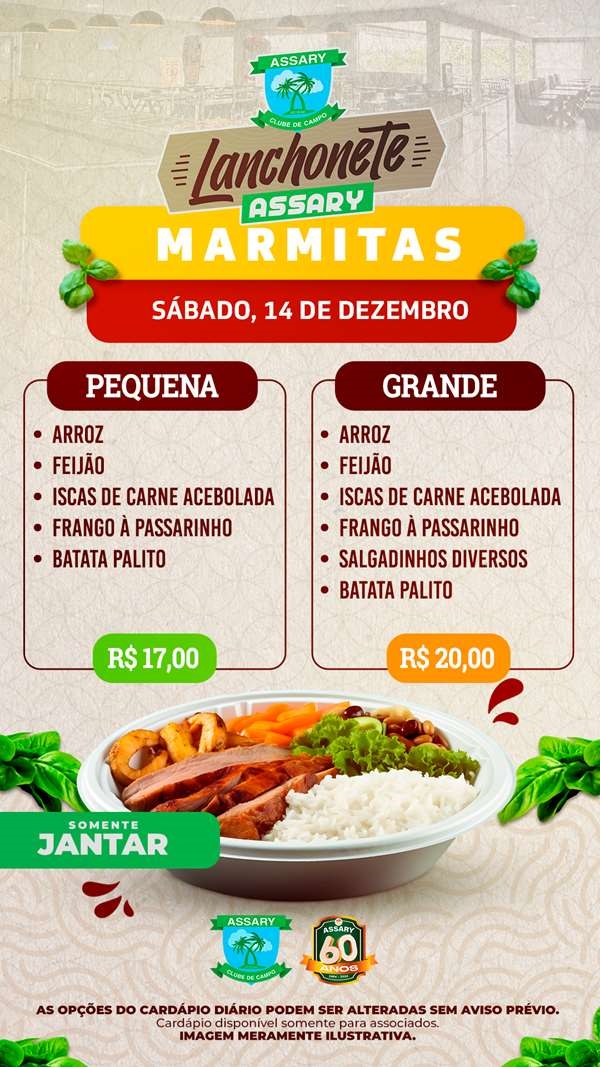 Confira também os cardápios de MARMITAS!