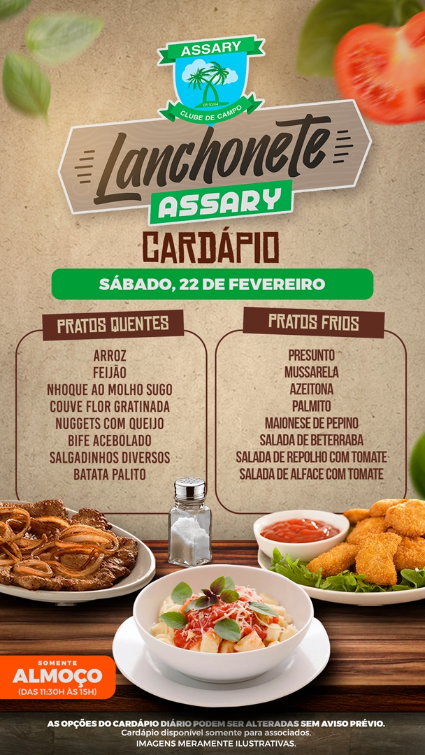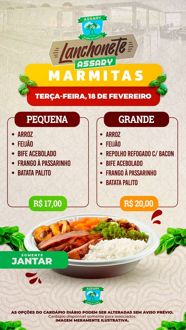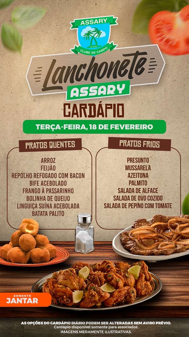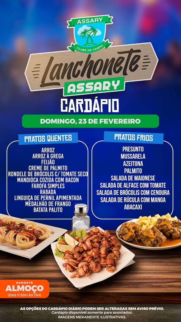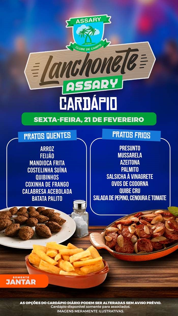 Cada dia da Semana tem um cardápio diferente e o melhor lugar para jantar é na Lanchonete do Assary.